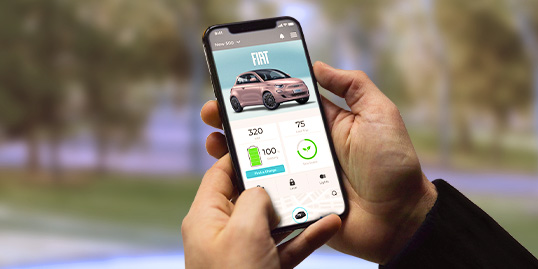 *Este serviço conectado está apenas disponível nos modelos Fiat 500e. Requer que o veículo tenha acesso a uma rede celular e, portanto, que os termos de serviço da operadora sejam aceites. Os serviços de rede são fornecidos por uma operadora externa, como uma operadora de telemóveis. Concorda em utilizar os serviços de rede de acordo com os termos de serviço dessa operadora. Este serviço está disponível em italiano, inglês, francês, alemão e espanhol. Amazon, Alexa e todos os logótipos relacionados são marcas comerciais da Amazon.com, Inc. ou das suas afiliadas.