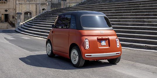 Graças ao seu comprimento compacto de apenas 2,53 metros e excelente manobrabilidade, o Topolino adapta-se perfeitamente ao ritmo das cidades. Com uma velocidade máxima de 45 km/h e uma bateria de 5,4 kWh que oferece até 75 km de autonomia, insere-se perfeitamente na vida quotidiana, com carregamentos simples em casa e acesso gratuito a Zonas de Tráfego Limitado (ZTL) e centros históricos das cidades. No interior, o Topolino surpreende pelas suas dimensões: os bancos escalonados e as amplas superfícies envidraçadas criam um interior luminoso e arejado que transmite uma sensação acolhedora, aberta e alegre.