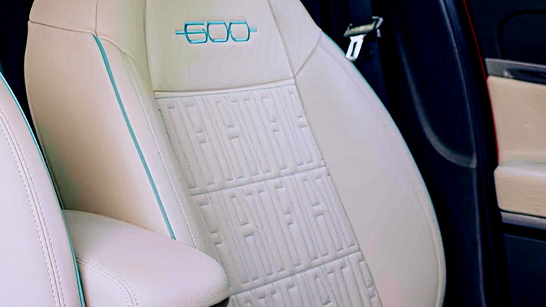 O seu bem-estar é uma prioridade: basta um clique e poderá conduzir com mais facilidade e descontrair-se graças à massagem para o banco do condutor, com interior em marfim premium e detalhes em turquesa com o monograma FIAT.