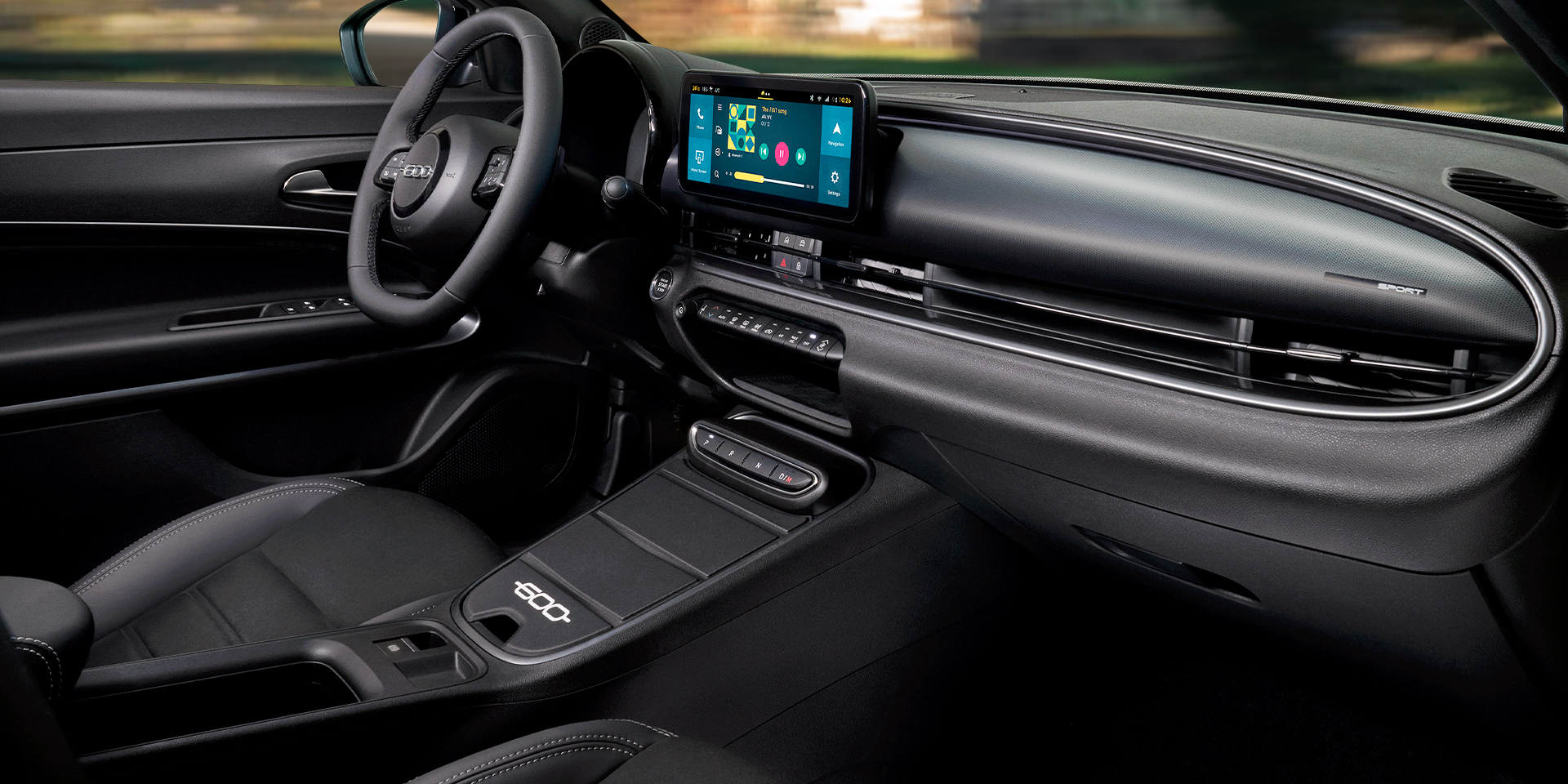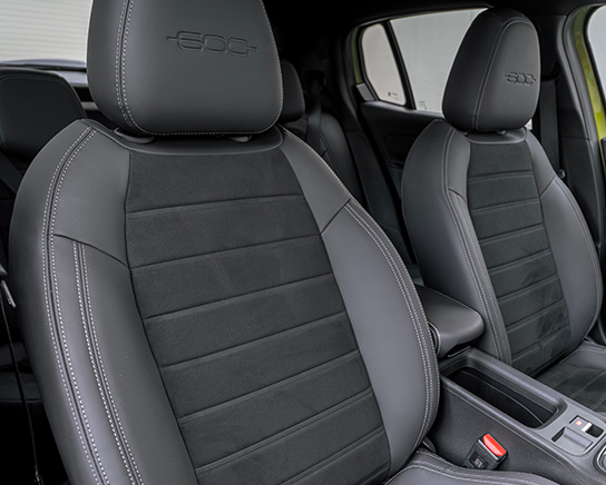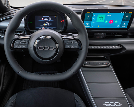 Entre no novo Fiat 600 Sport e descubra um interior preto que redefine a elegância moderna. O novo acabamento do tabliê, os bancos desportivos e os elegantes painéis das portas pretos criam uma atmosfera onde o conforto se alia ao caráter. Cada elemento foi concebido para mantê-lo imerso no estilo, permitindo-lhe sentir a energia pura do 600 em cada detalhe.