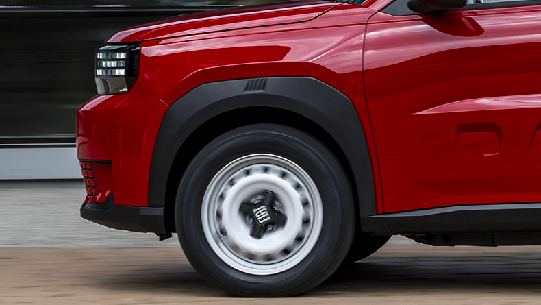 Destaca-se com as jantes de aço (RED) de 16'' com acabamento pintado de branco.