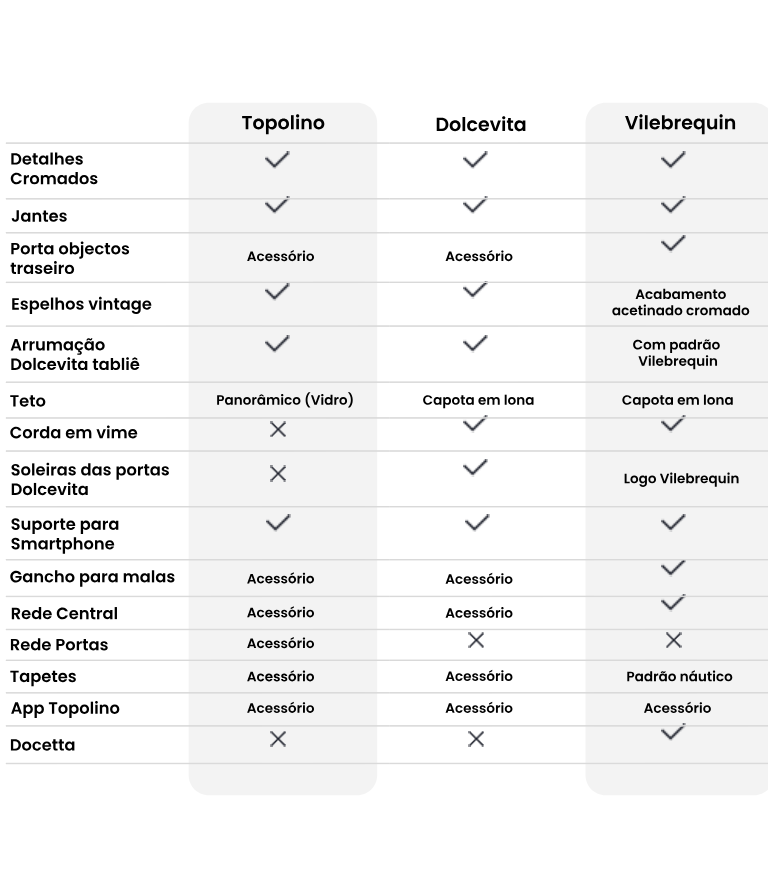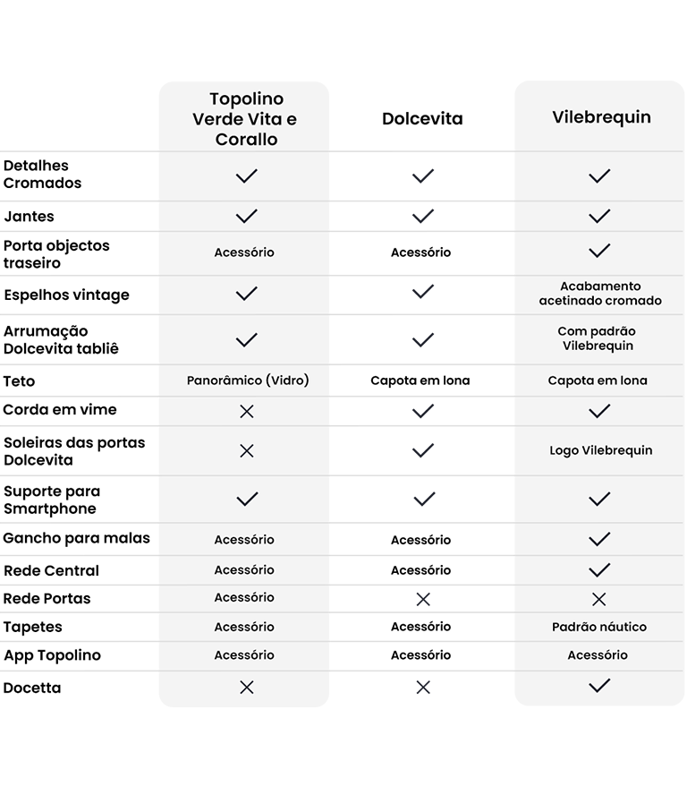 Conheça todos os detalhes do seu novo Topolino & Topolino Dolcevita e escolha a versão que melhor se adapta ao seu estilo de vida e necessidades.